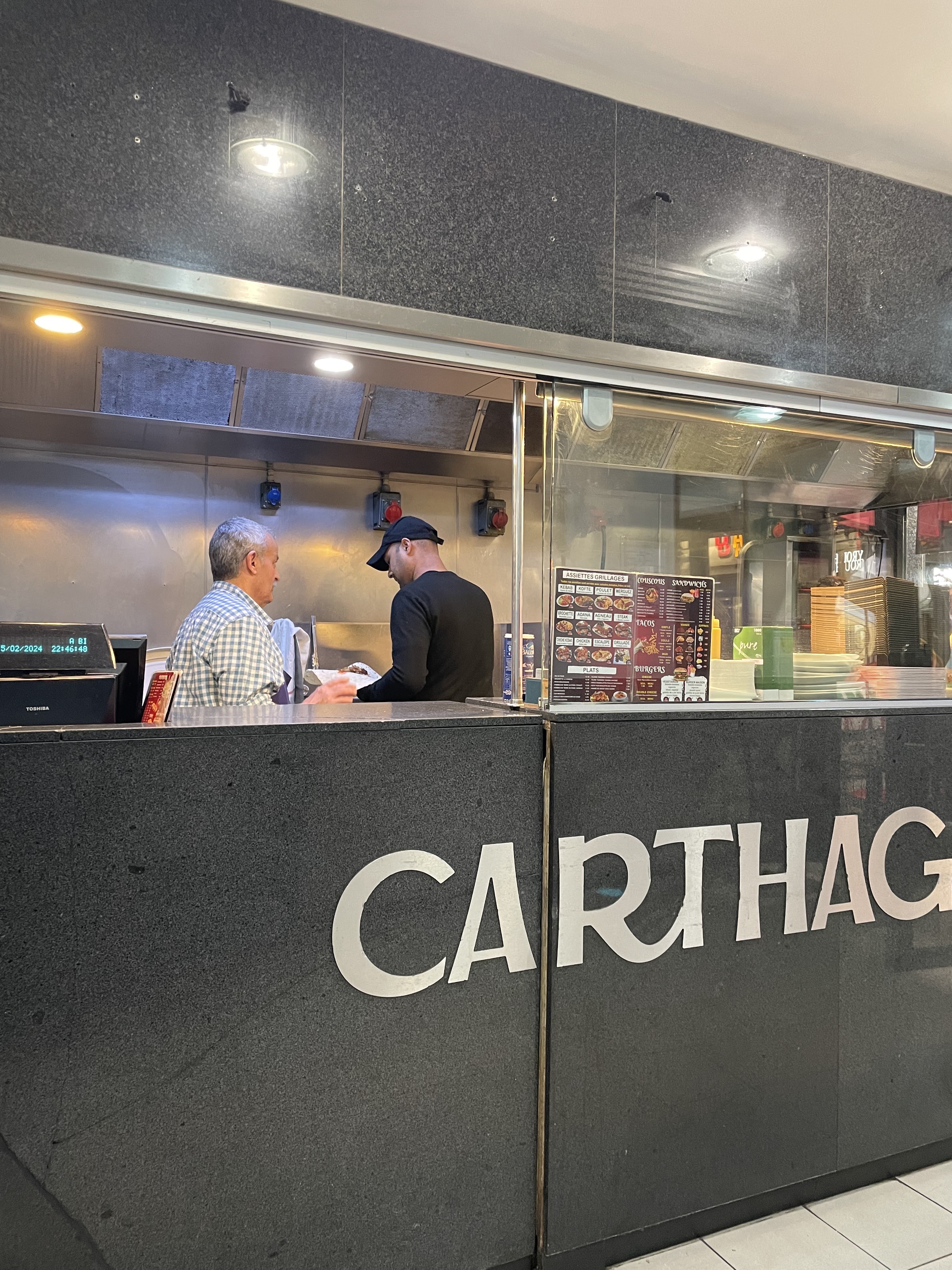 Nous sommes revenus déjeuner au Carthage vers la mi-mai 2015. Première constatation: le restaurant était presque vide. Nous avons commandé une assiette Kebab & une assiette Adana. Outre la qualité quelconque du Kebab, nous y avons trouvé un morceau de plastique (surement un reste d'emballage). Quant à l'assiette Adana, la viande était mauvaise. J'ai fais la remarque à la serveuse qui m'a immédiatement proposé de changer de plat. A surveiller. Un accueil correct & une serveuse prévenante, une salle spacieuse & propre. De nombreuses suggestions, des plats préparés au moment. C'est bon & les portions sont généreuses.