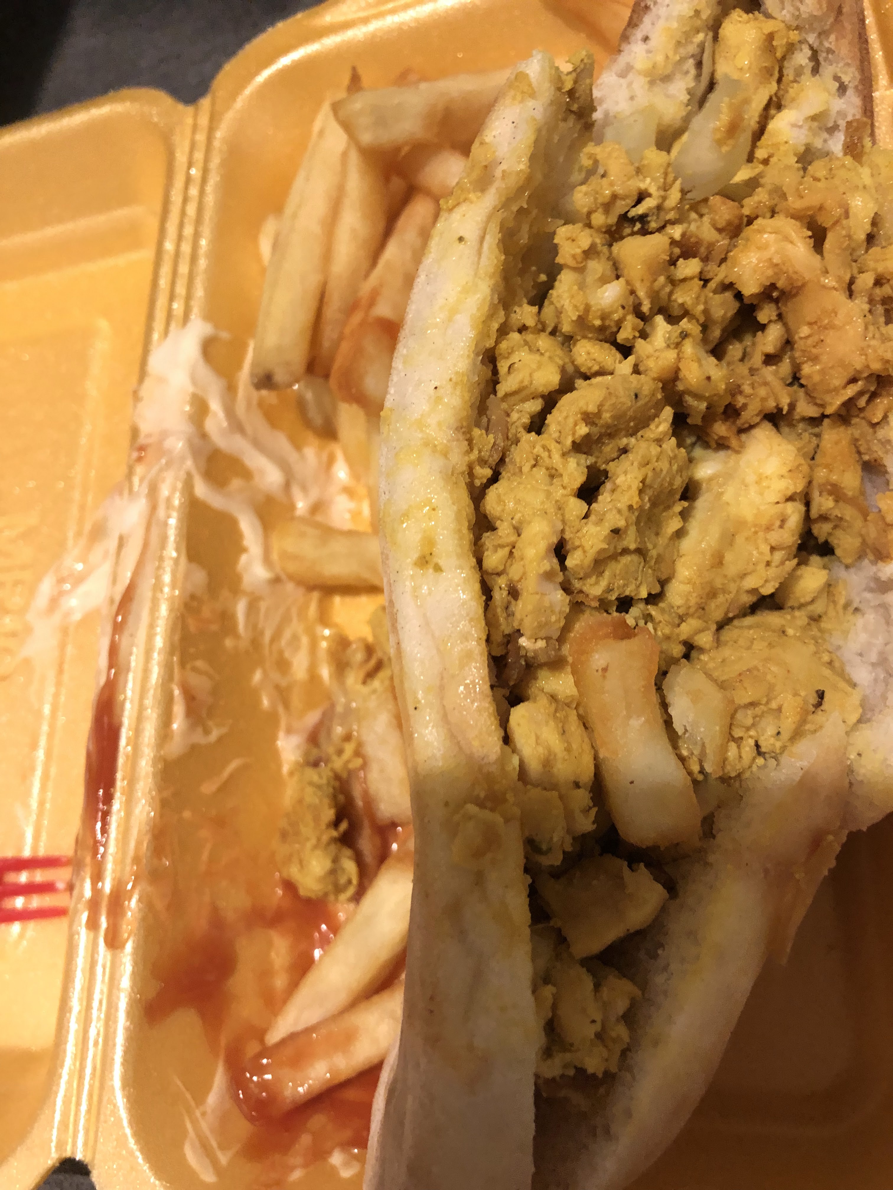 Très bonne expérience, le patron c'est le boss et le personnel est souriant, service à table dans une assiette avec un verre alors que j'étais prêt à me sustanter à la seule force de mes deux paluches pleines de doigts. Le petit boga citron qui fait allégrement descendre le sandwich aux brochettes de poulet dans mon œsophage. Les bâtonnets de pommes de terres sont croustillants à souhait.