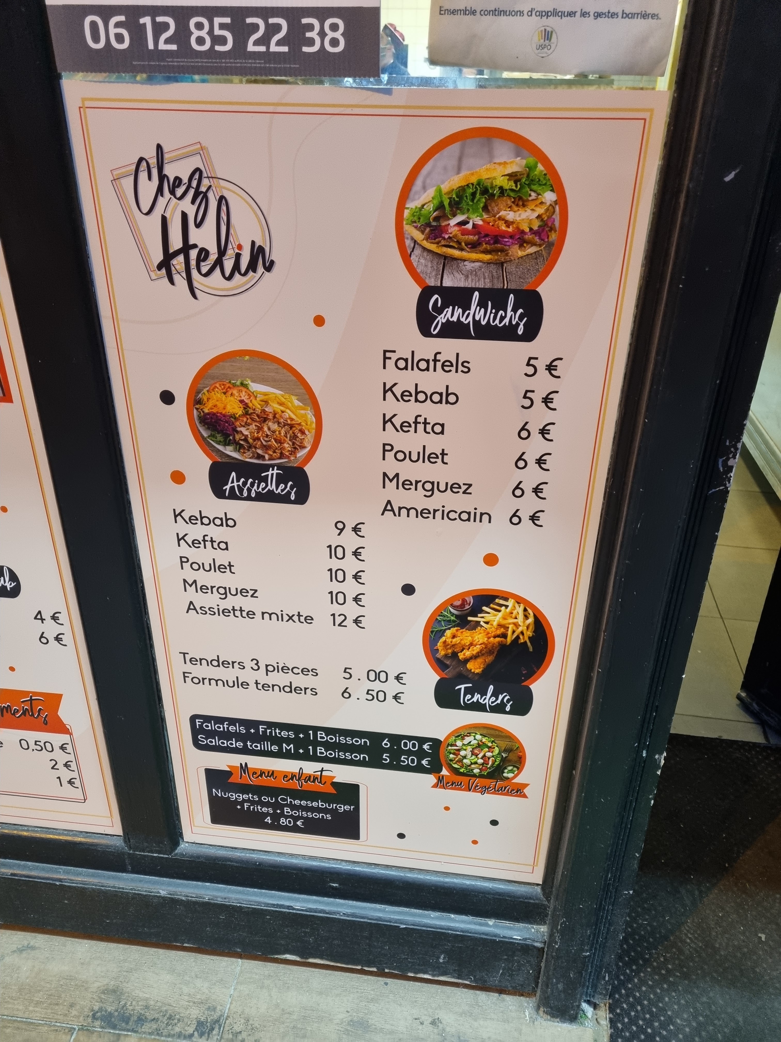 Nous venons de commender 4 sandwiches kebab, je sais pas ce qui se passe mais maintenant ils sont faits avec de la crêpe, la viande est différente, moins garni, mais le même prix, la gamme a bien baisser, se ne sont plus des kebab, donc terminé chez helin, avant c'était excellent... dommage