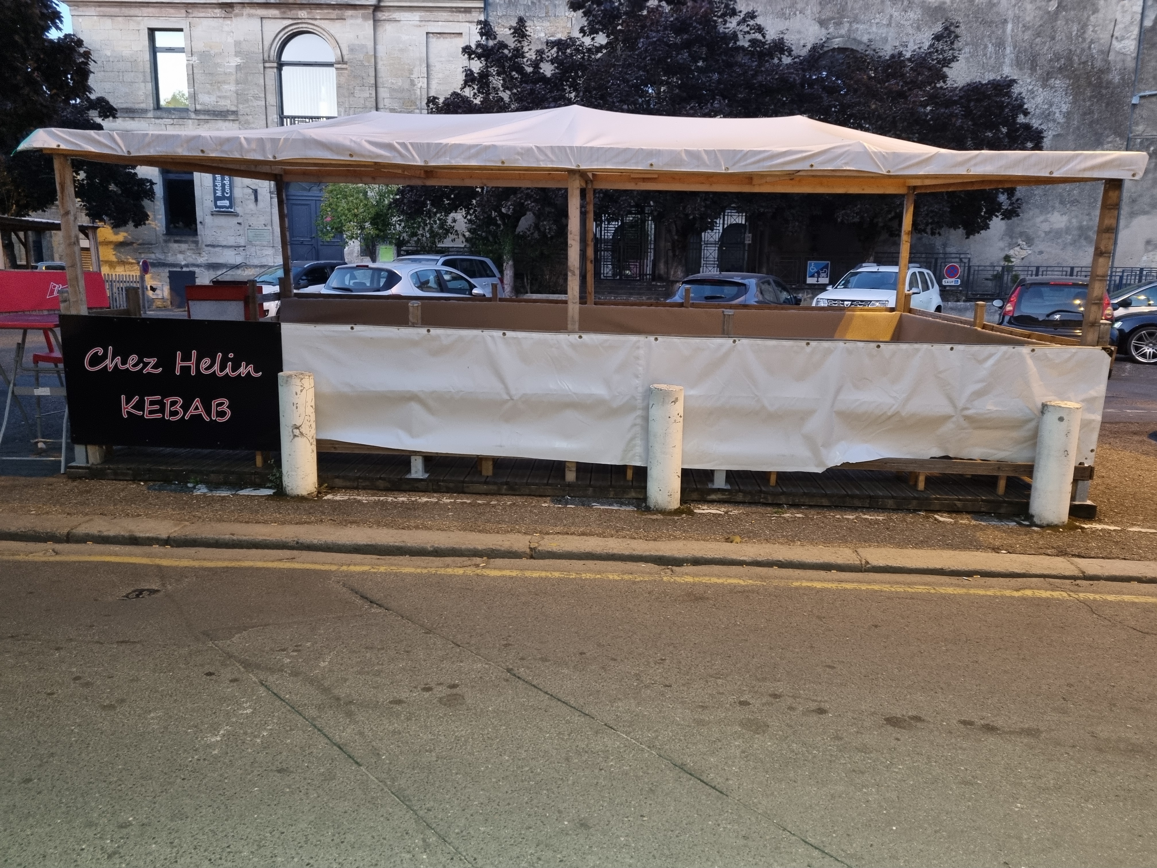 Je viens d'arriver au festival festar de rue . je suis aller la la central pour cherché un plan du site pour aller voir les artiste en sortent de la central j'ai vue un table puis un buvette à côté on c'est mis à la table puis on a comma.de a boir à la buvette. Il y a un jeune homme qui est venu nous voir si dire les mots gentiment il nous a wite les table appartient au kebab je me suis excuse puis il est parti il est revenu je lui est dit qu'il ni avais pas d'affiche qui indique que c'est a eux il est retourné dans le bars appelé le patron qu'il est sorti est venu me voir il.ma.prix pas le bars avec force pour me dire qu'il y avais une affiche que devant alors je lui est est qu'il avais cars mettre partout sont attitude est ça façon de faire ma.complètement dessus est a ce moment en parten j'ai remarqué il avais quelqu'un derrière luis qui le suivez