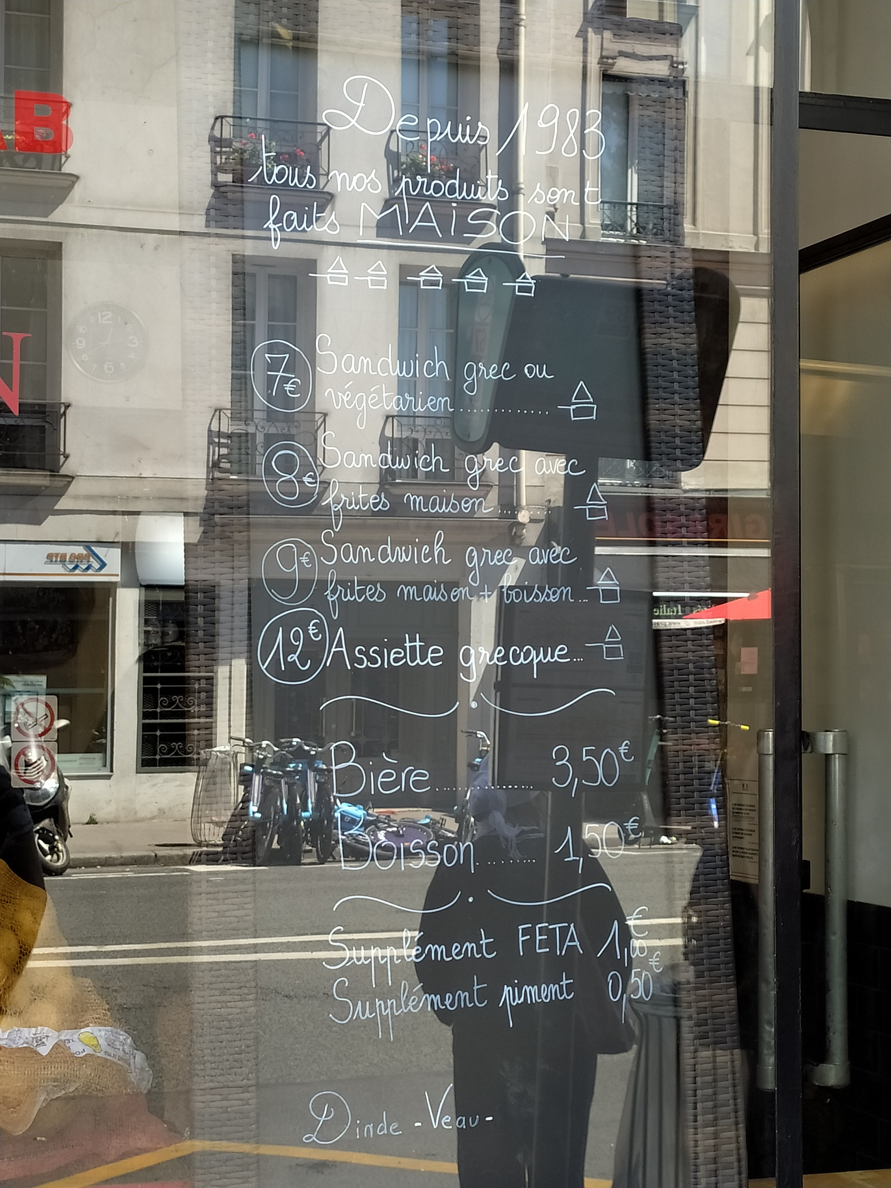 Pris le Kebab classique avec frites et boisson. Très bon Kebab et super frites donc très satisfait ! Vente a emporter uniquement mais tout a côté du jardin des plantes...