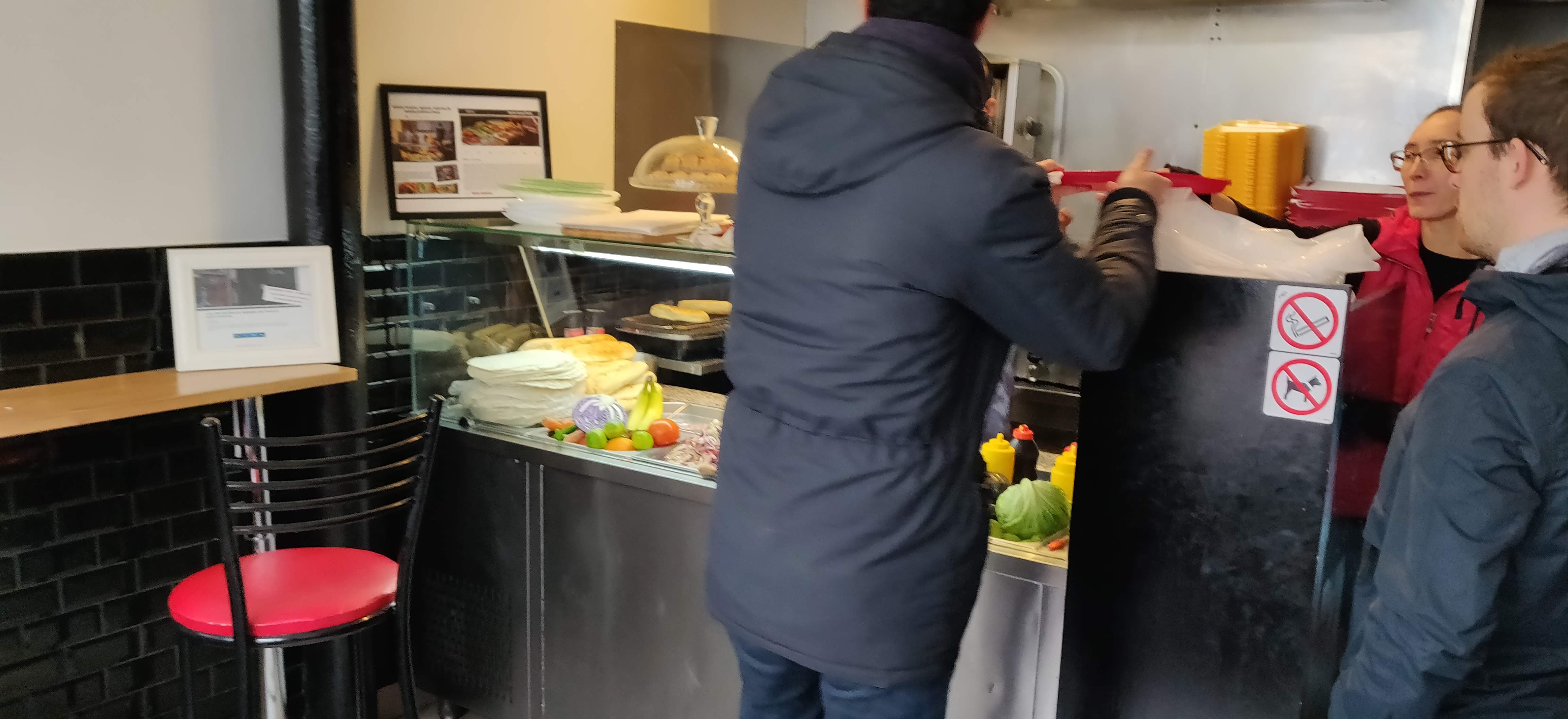 En ballade dans le quartier, nous avions envie d'un bon kebab. Vu les commentaires positifs, nous avons sagement patienté pendant une demie-heure pour passer commande quand la personne en charge a tout bonnement fait passer un groupe de 13 personnes devant nous. Si vous êtes un habitué, chouette pour vous ! Si vous êtes un pauvre touriste qui ne reviendra jamais, vous pouvez passer votre chemin le ventre vide et vos principes de politesse sur les bras !!