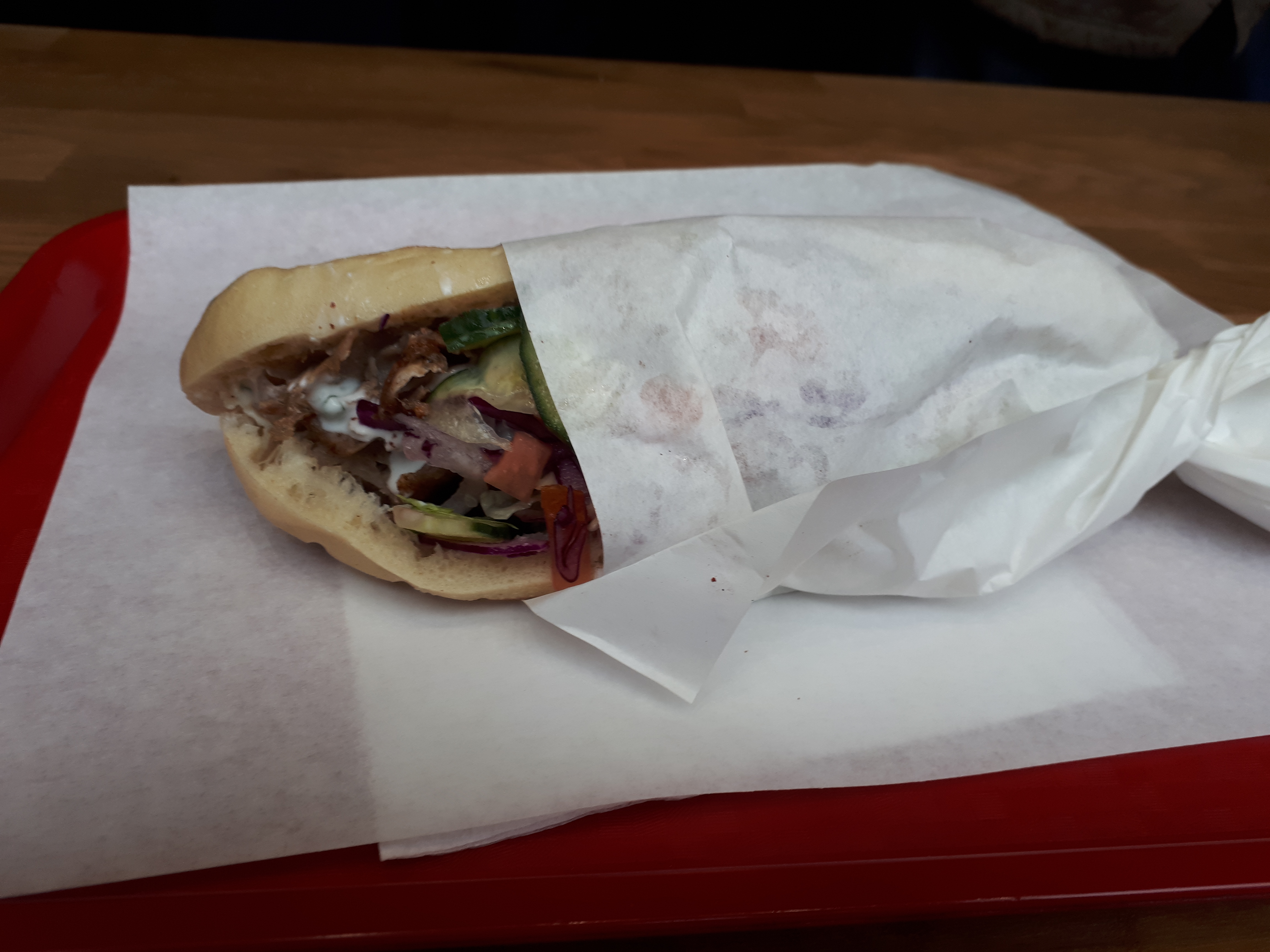 Ça été une grande surprise, quelle découverte gustative. Après ce sandwich *grec* je vais avoir du mail avec les kebabs lyonnais. Des epices, du choux râpés, carottes râpés, sauce épicée maison, viande faite maison ! On c’est régalé ! A bientôt sur Paris
