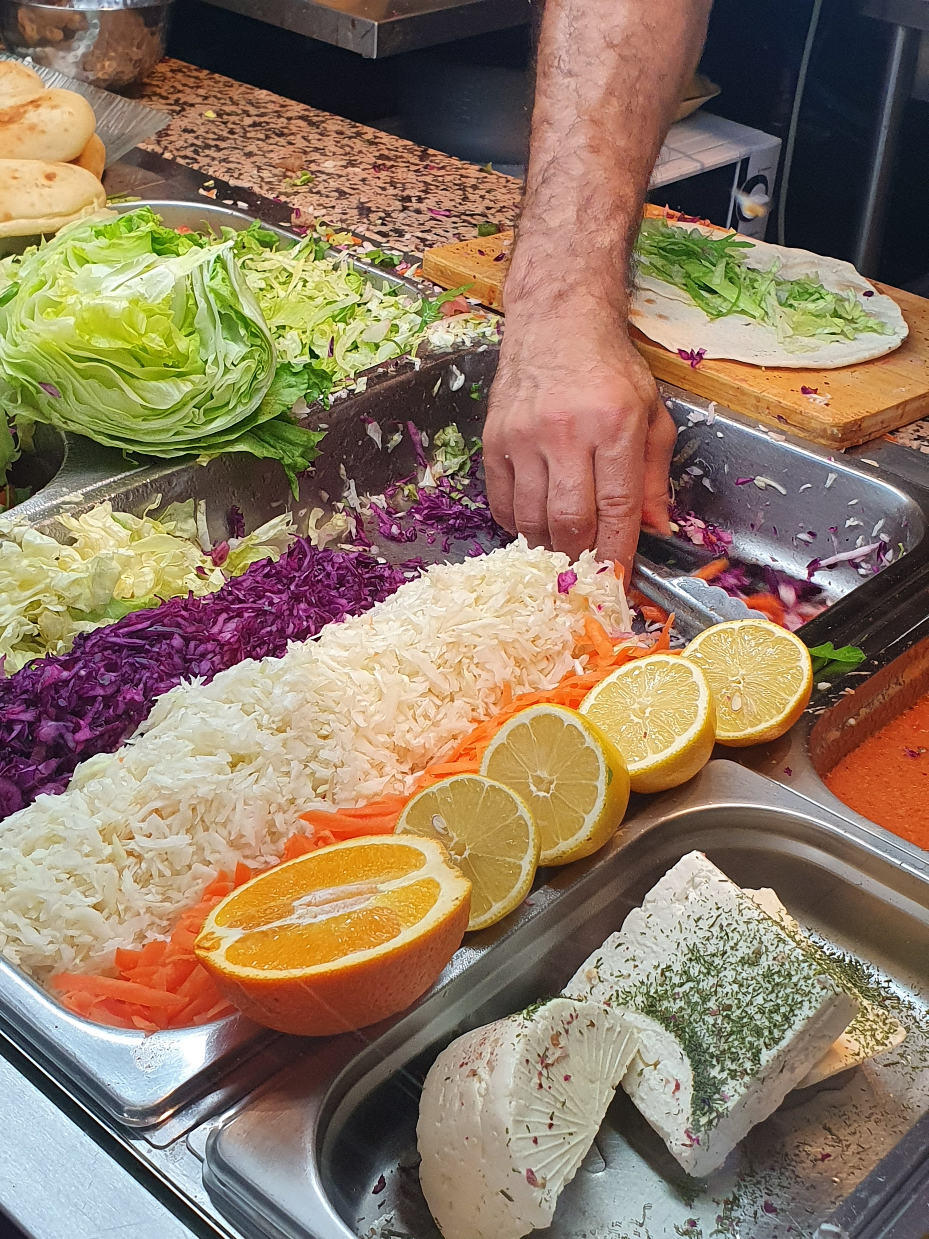 Incontestablement le meilleur sandwich grec que j'ai mangé. Des sauces maison, des accompagnements variées en standard ou en supplément : choux rouge, carottes, graines de grenade, avocat, feta, cheddar. Des frites maisons et de la viande préparée maison avec de la dinde et du veau. A tester absolument
