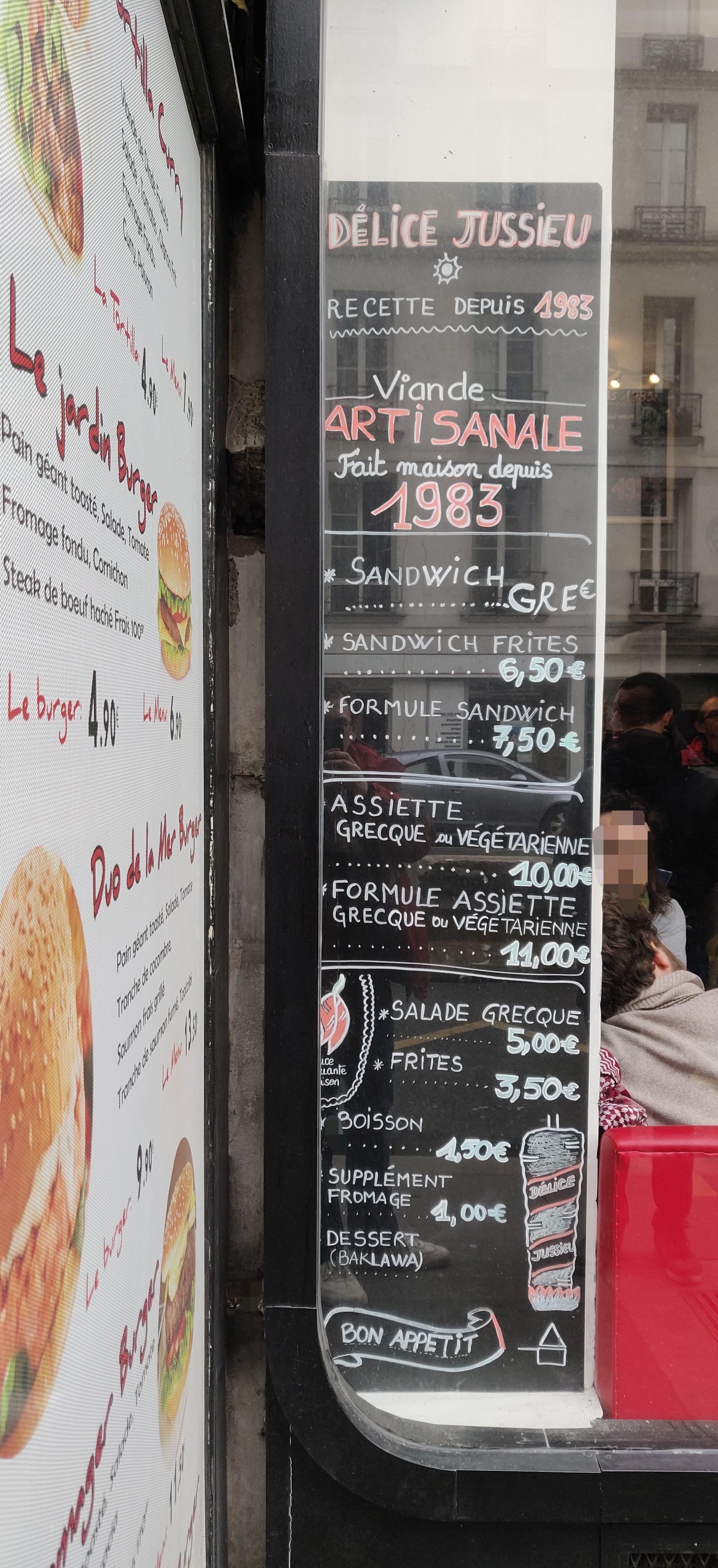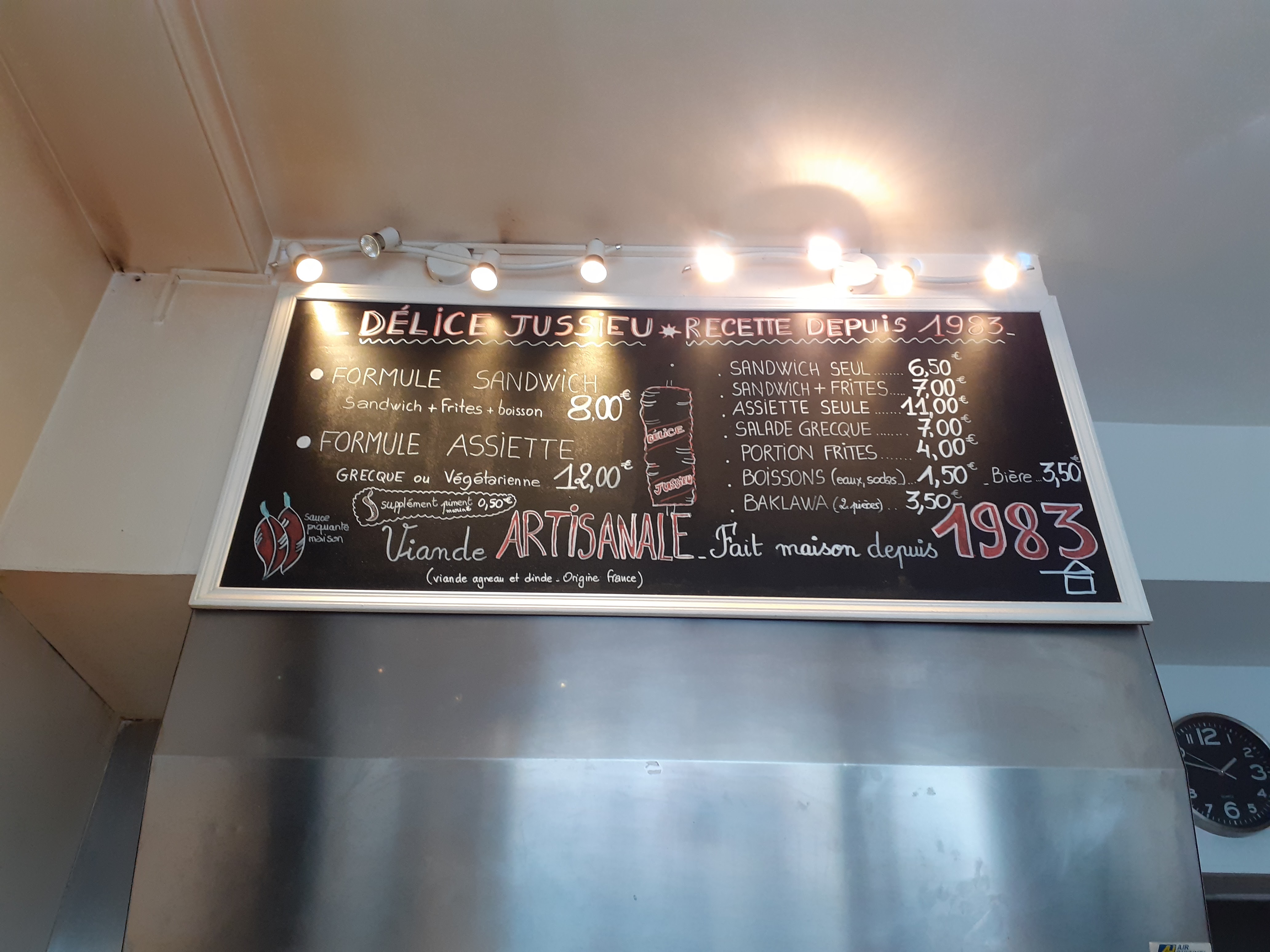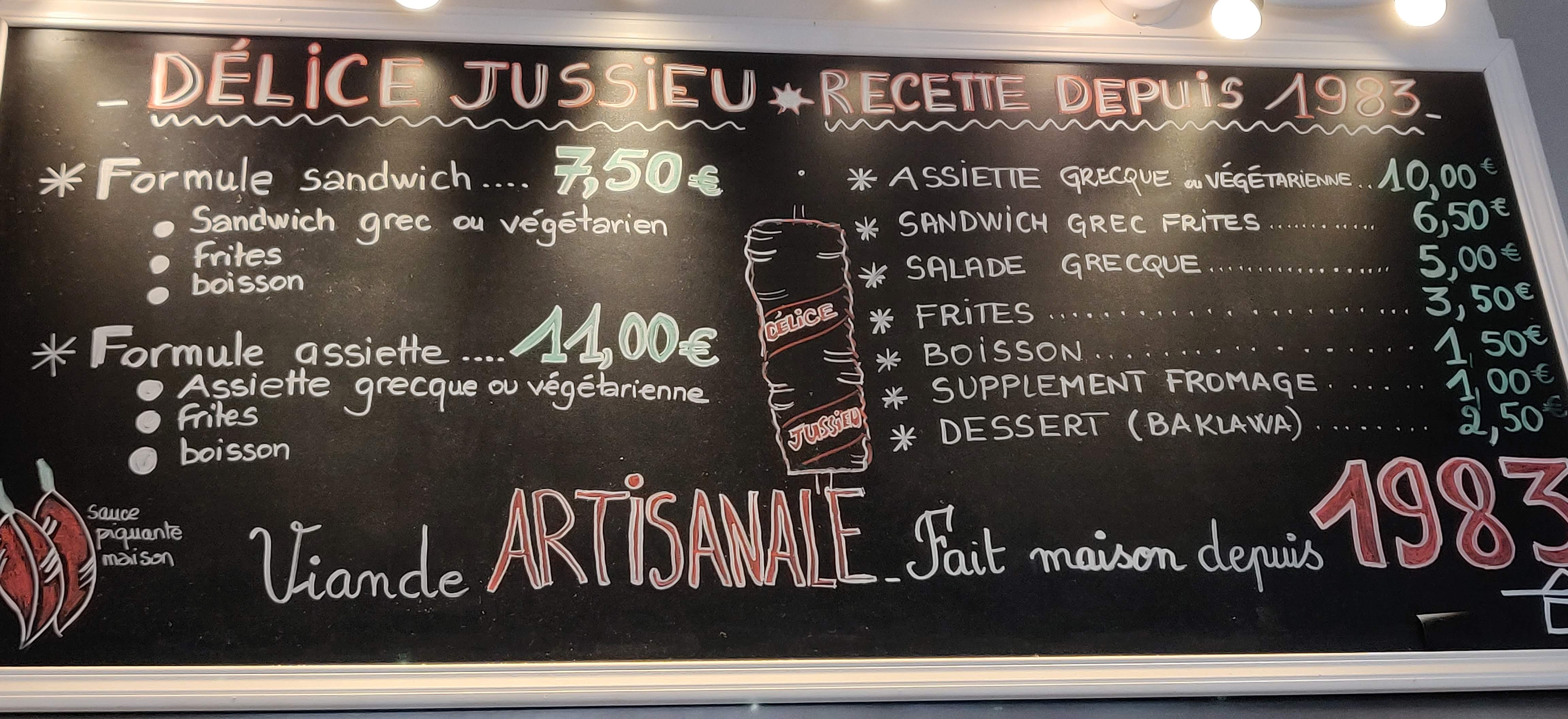 A peine arrivé de mon Occitanie natale à la gare d Austerlitz nous avons chercher un bon grec à proximité et nous avons eu la chance de tomber sur Délice Jussieu. Tout est fait main, accueil impeccable avec le sourire. Le sandwich est excellent pas avare sur la viande et les frites maisons au top ! C est sur on reviendra