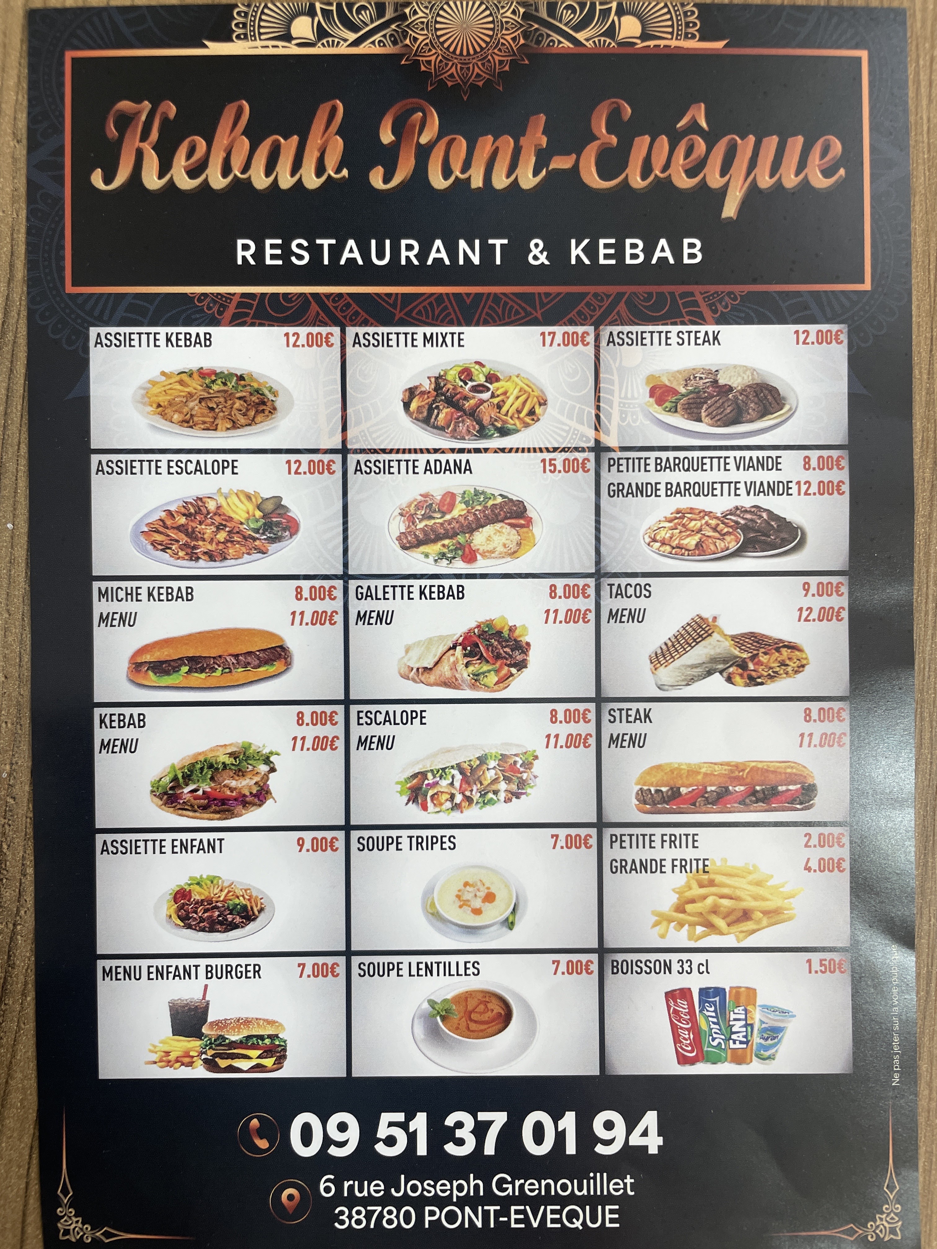 Tout est bon et frais 😋 un grand choix de KEBAB 🥙 à manger sur place ou à emporter le serveur est très agréable je recommande bon rapport /qualité prix 👍👍👍