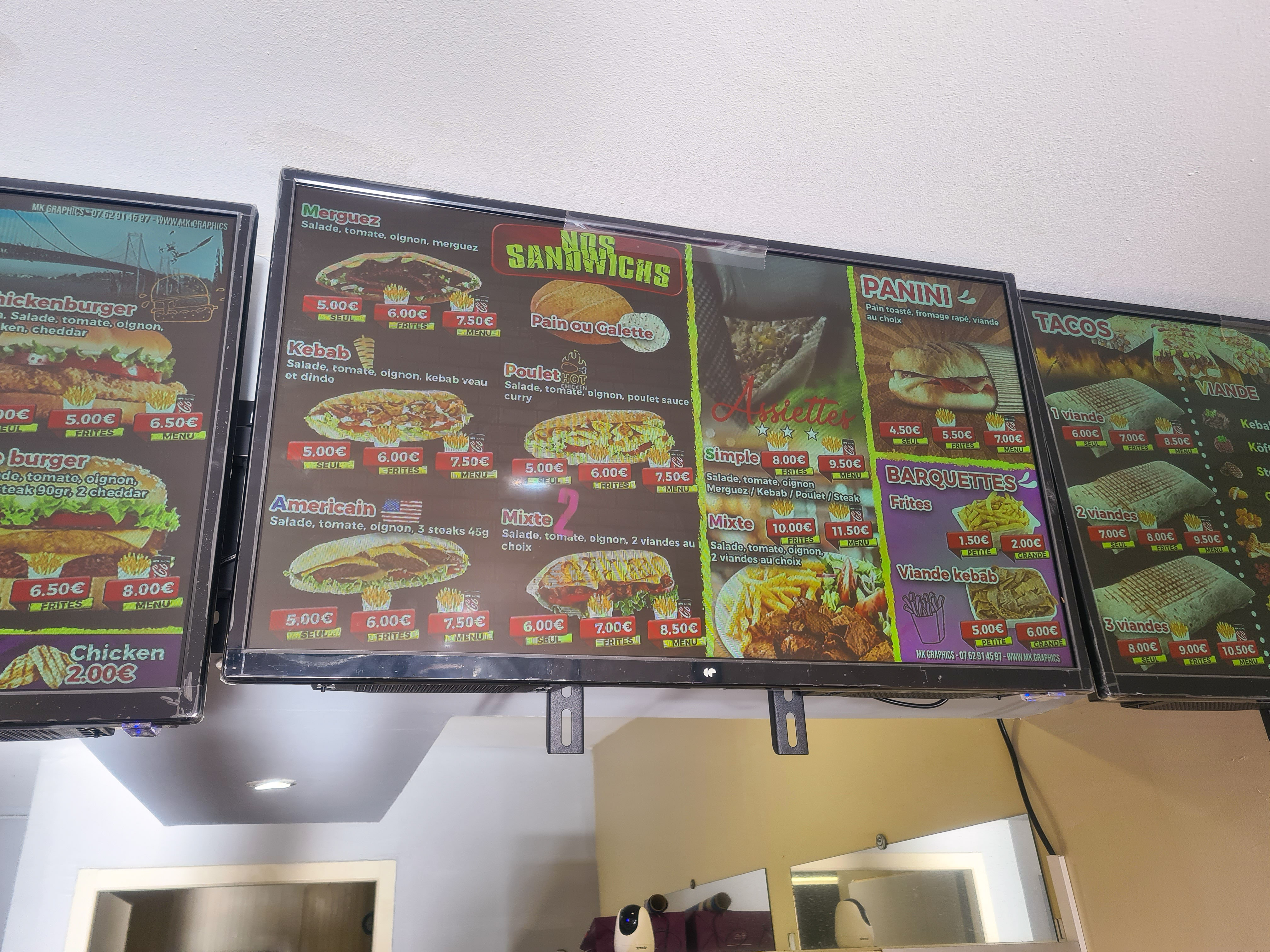 Bien situé, facile d'accès. Accueil au TOP. Large choix, kebabs, tacos, burgers. Aujourd'hui, 1ere visite, kebab, et super satisfaite. Merci pour le bon accueil, le thé offert en attendant la commande, le sourire, au plaisir d'y revenir pour tester burger et tacos😊