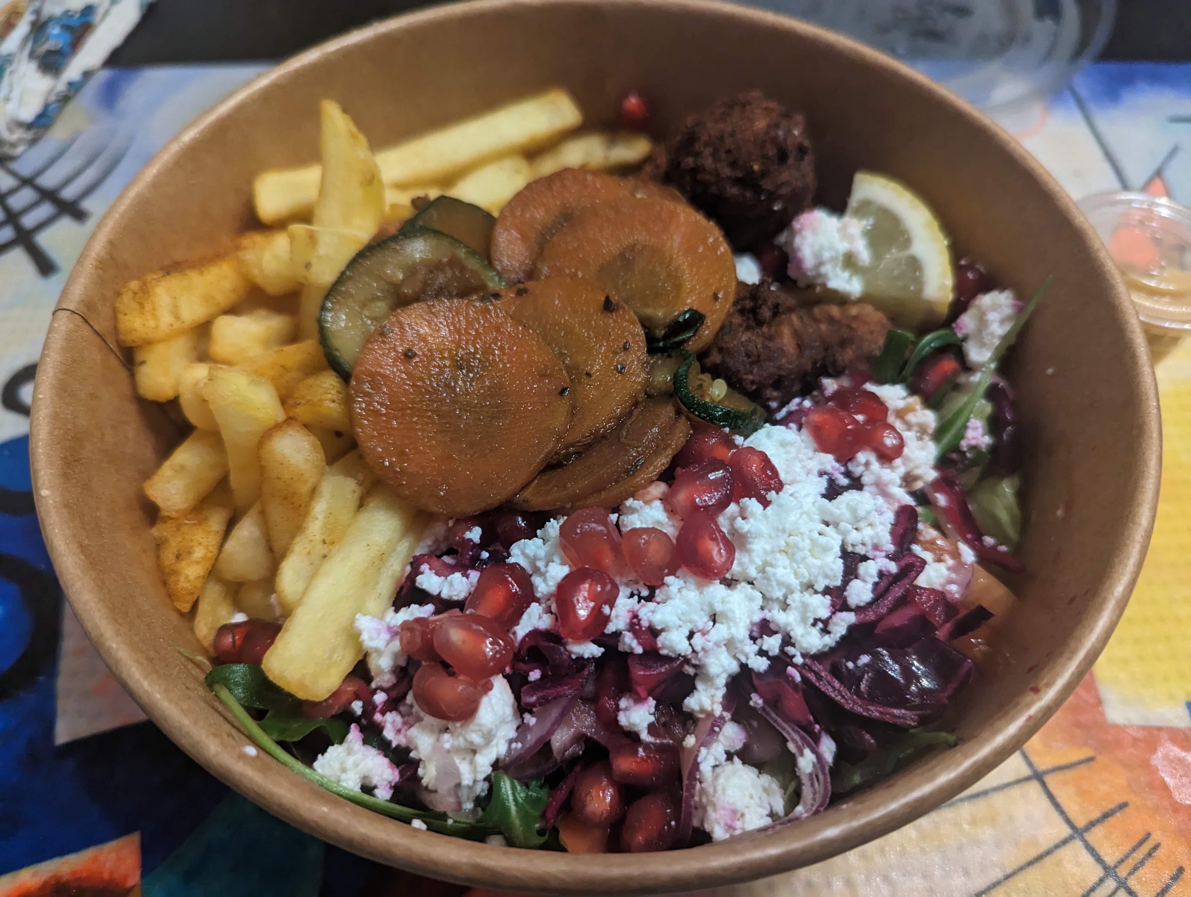 Tres belle découverte pour ce restaurant Kebab, un cadre cosy, un service souriant et une carte très intéressante, je me suis laissé tenter par un bowls Berliner, un mélange de saveur avec la fêta et les graine de grenade, la viande très bonnes et des frites cuites à points et tres agréable à manger. Je recommande