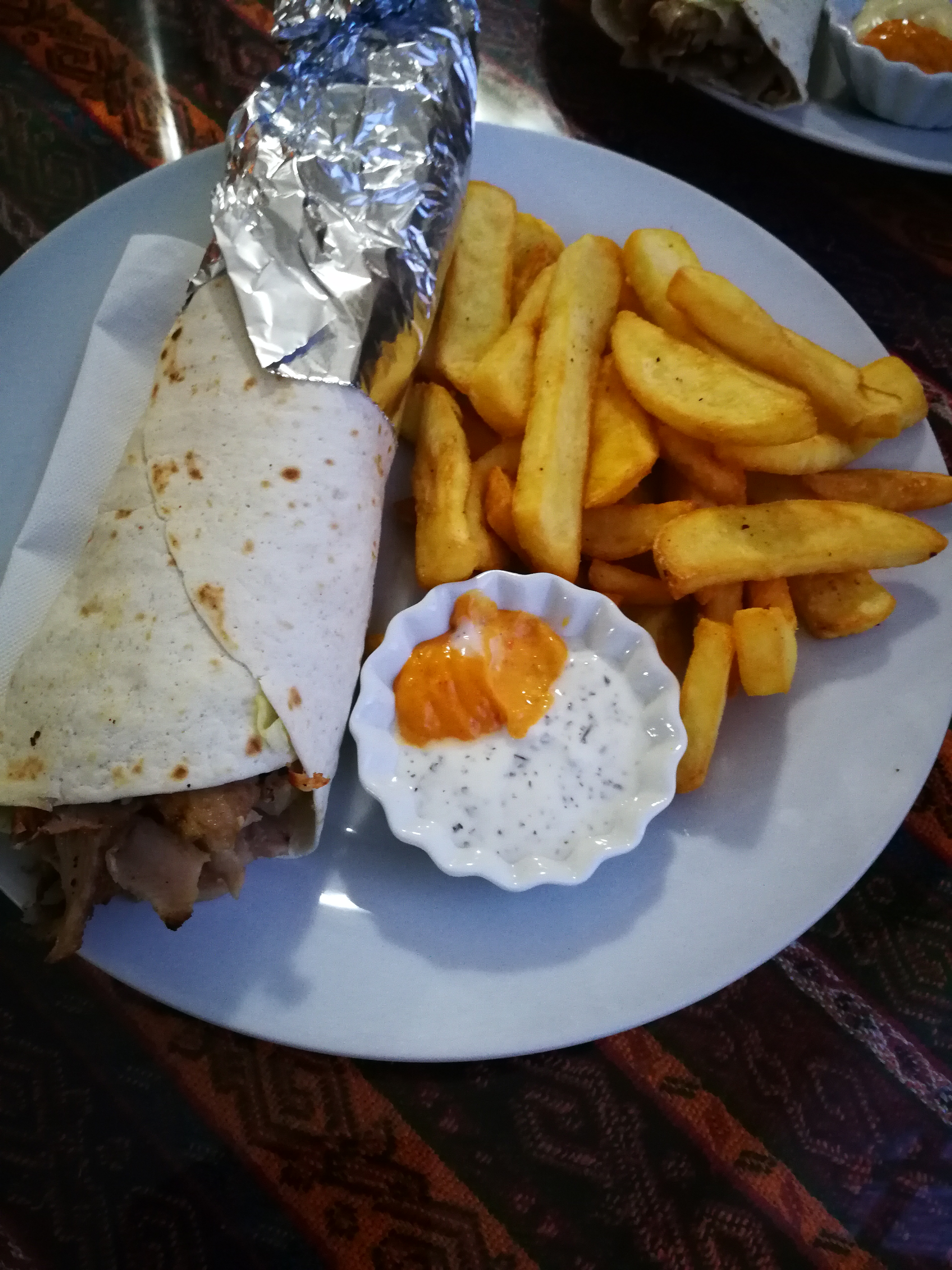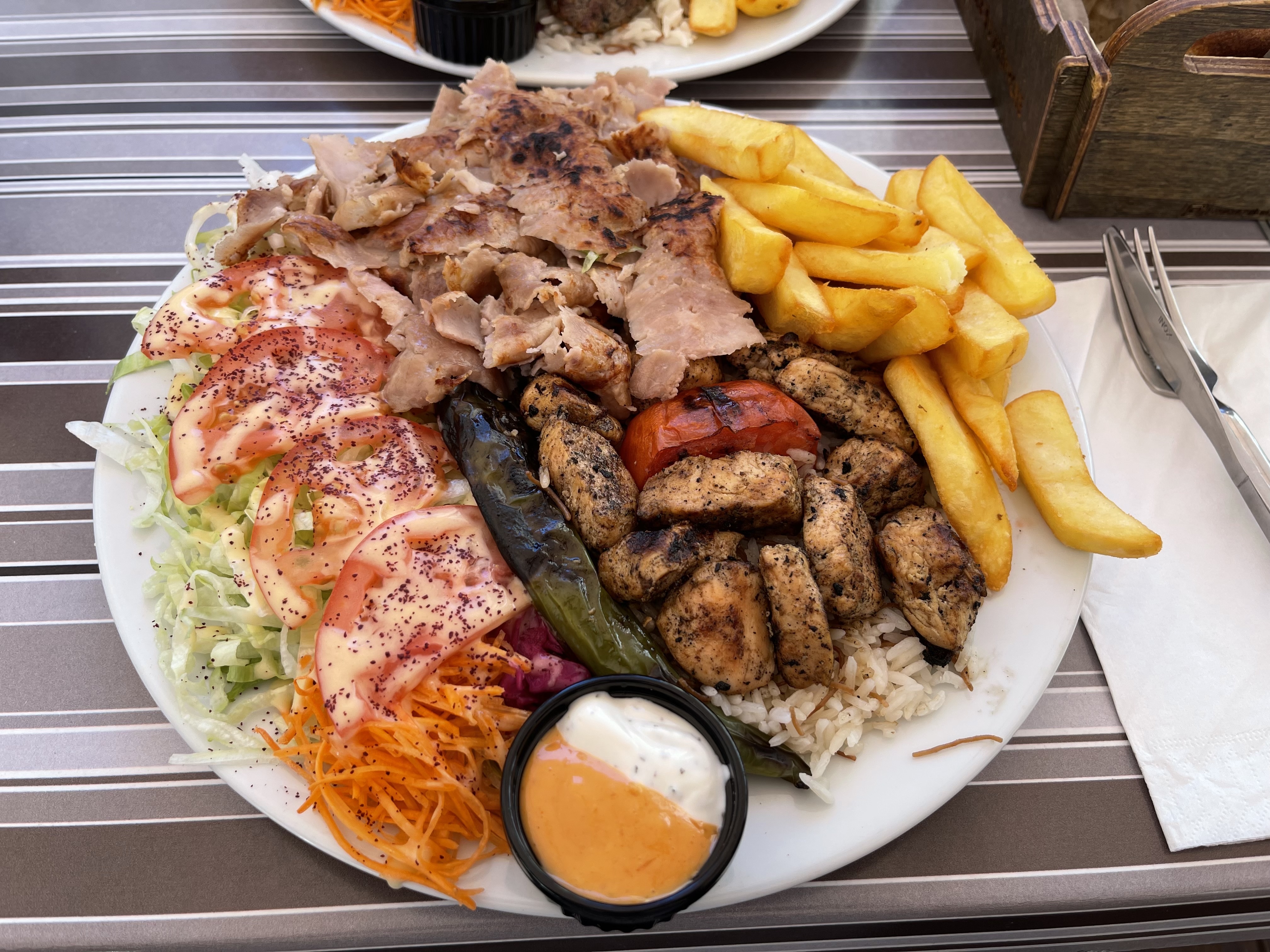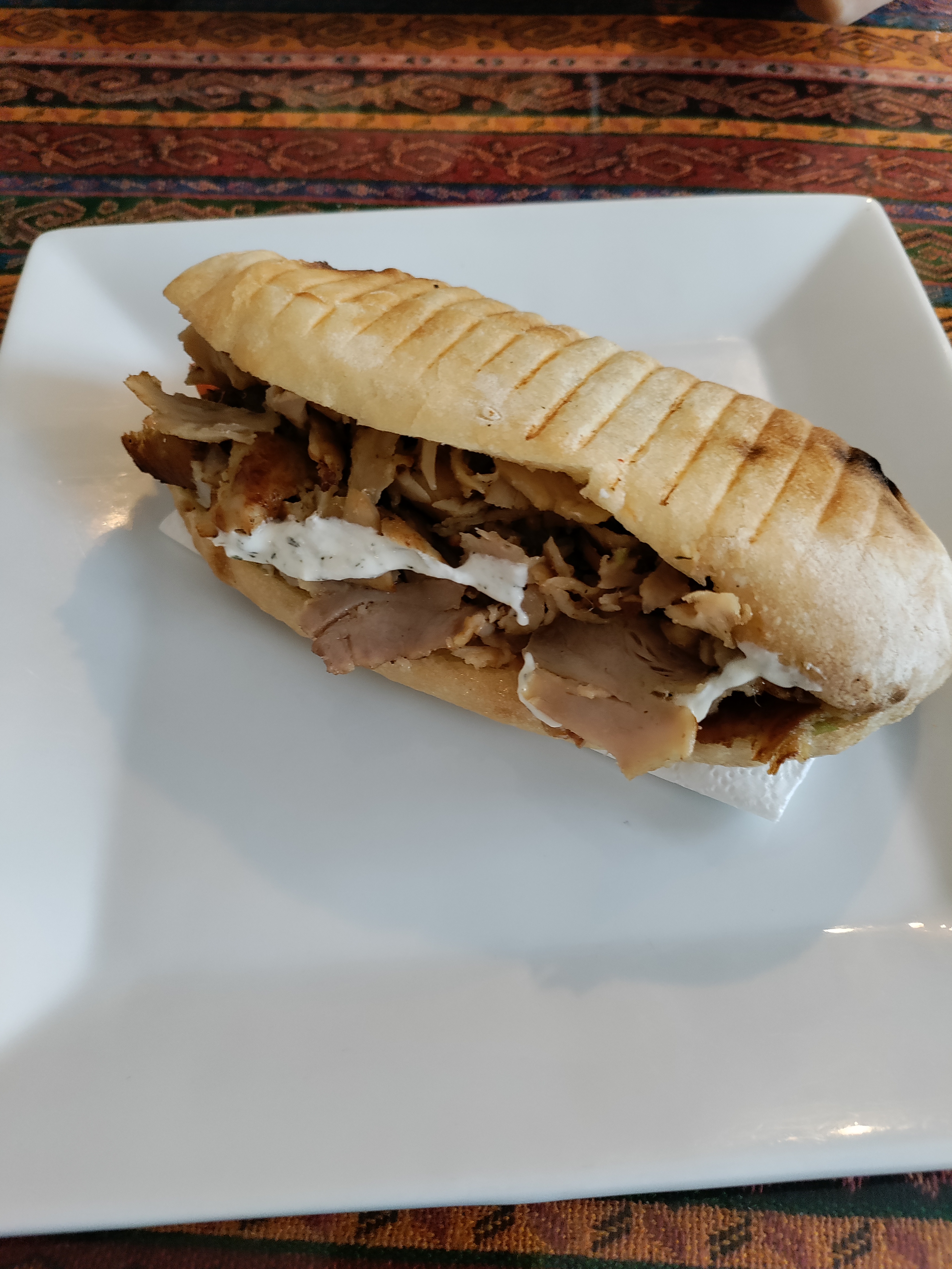 On a été accueilli par une charmante serveuse et on a mangé un repas copieux, varié, frais et très bon. On a bu une de l'eau municipale (au lieu des canettes très sucrées) et on donne la meilleure note à ce kebab.
