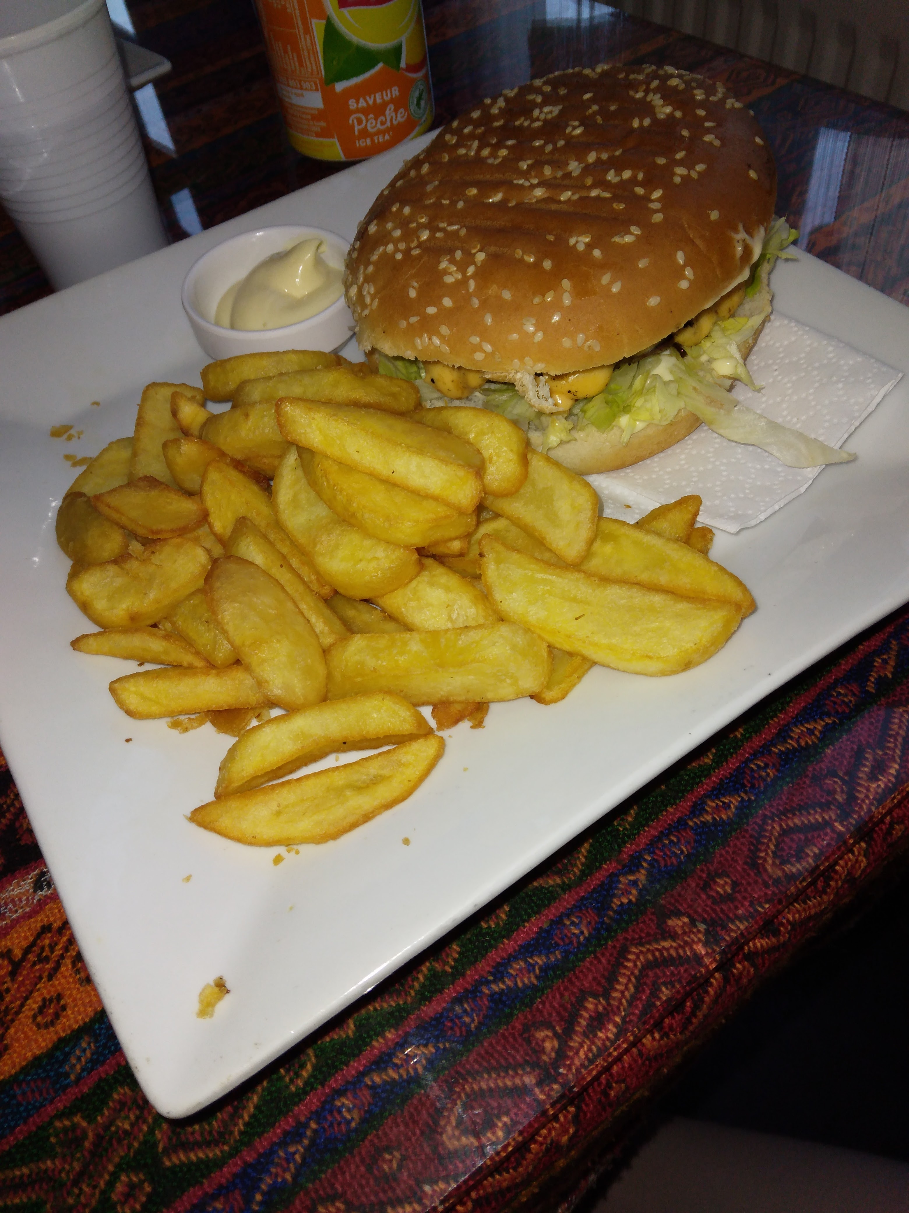 Pas terrible leur nourriture vient de carrefour city j’ai vu quand ils l’ont amené sinon c’est moyen a par les frites et des insultes en arabe sans arrêt je vous le conseil pas tellement
