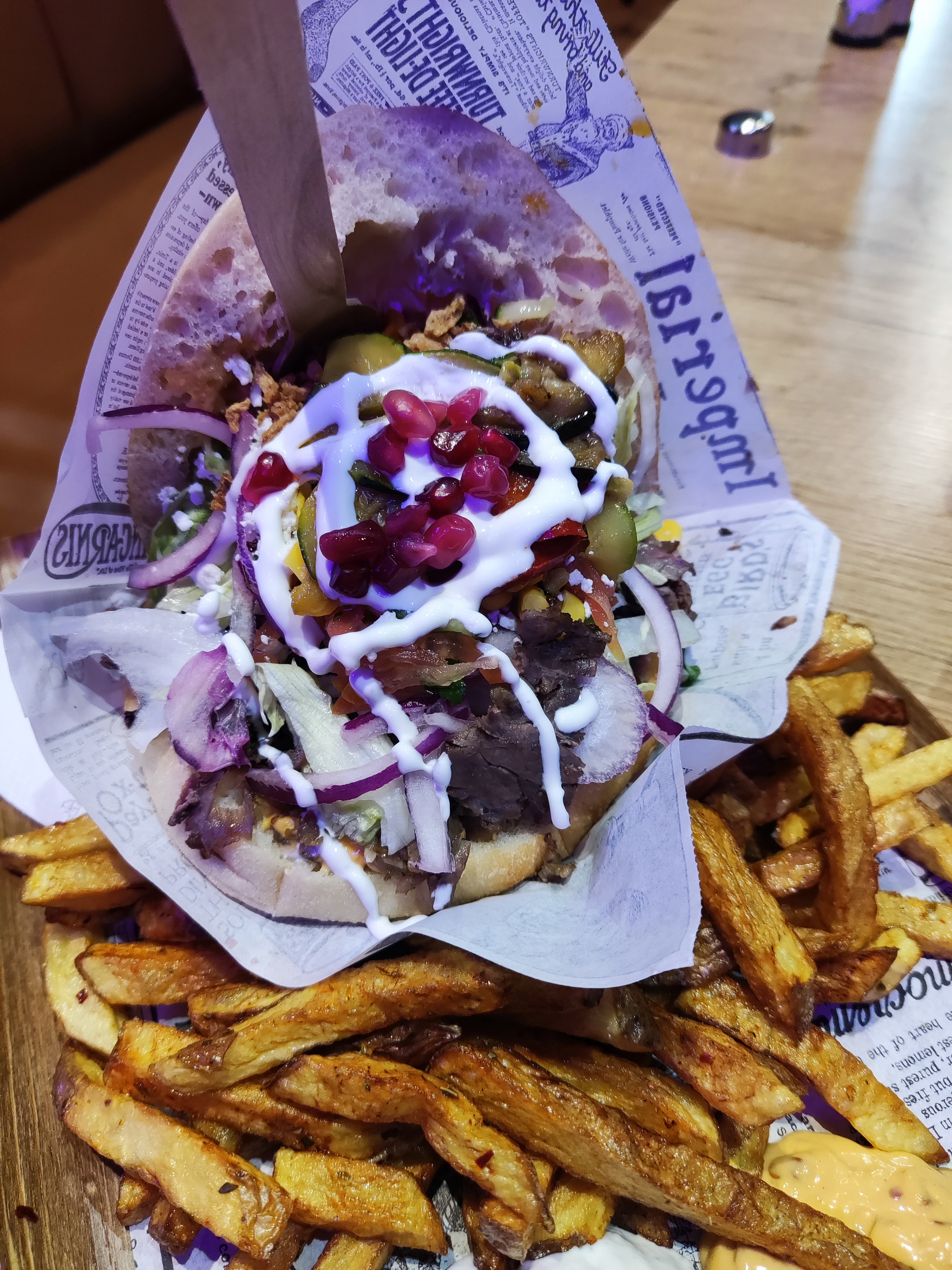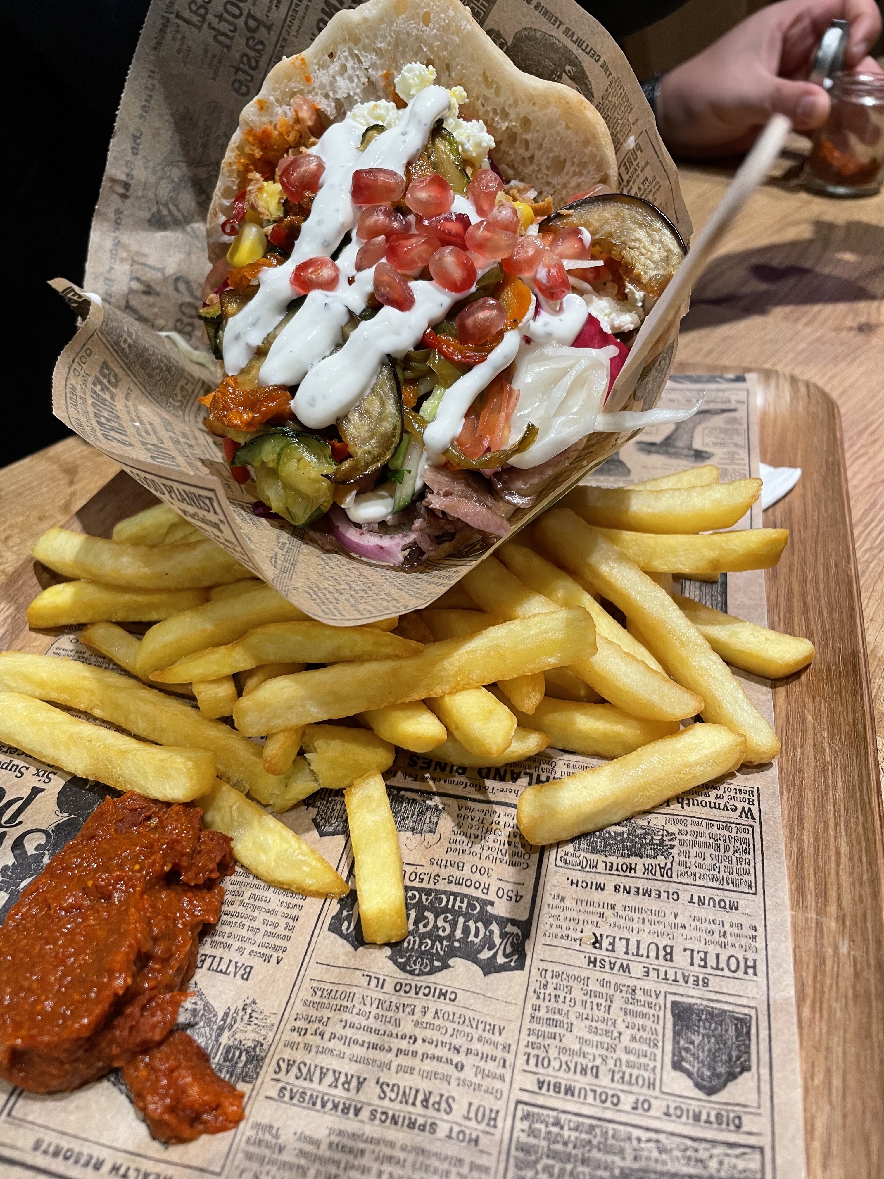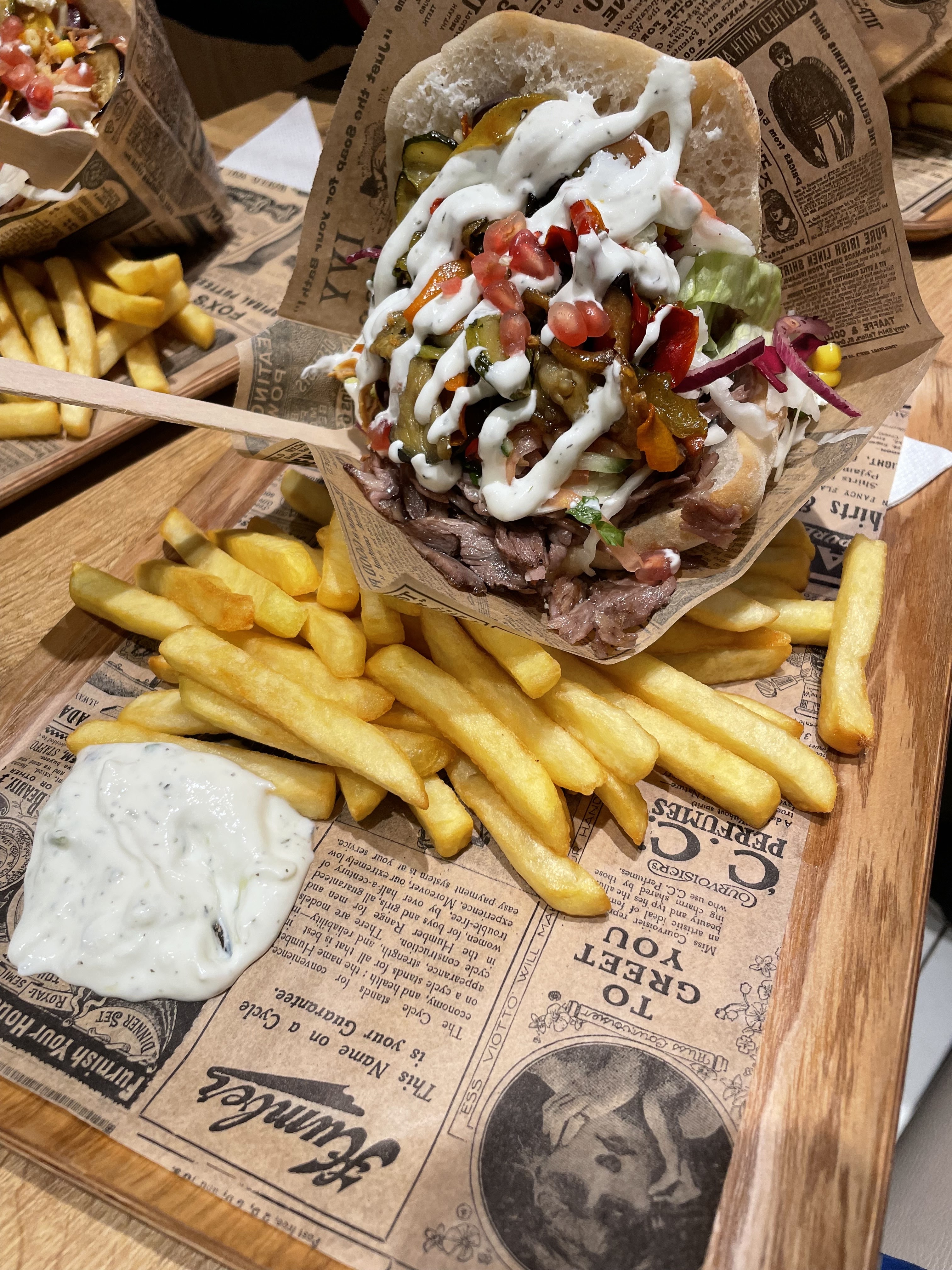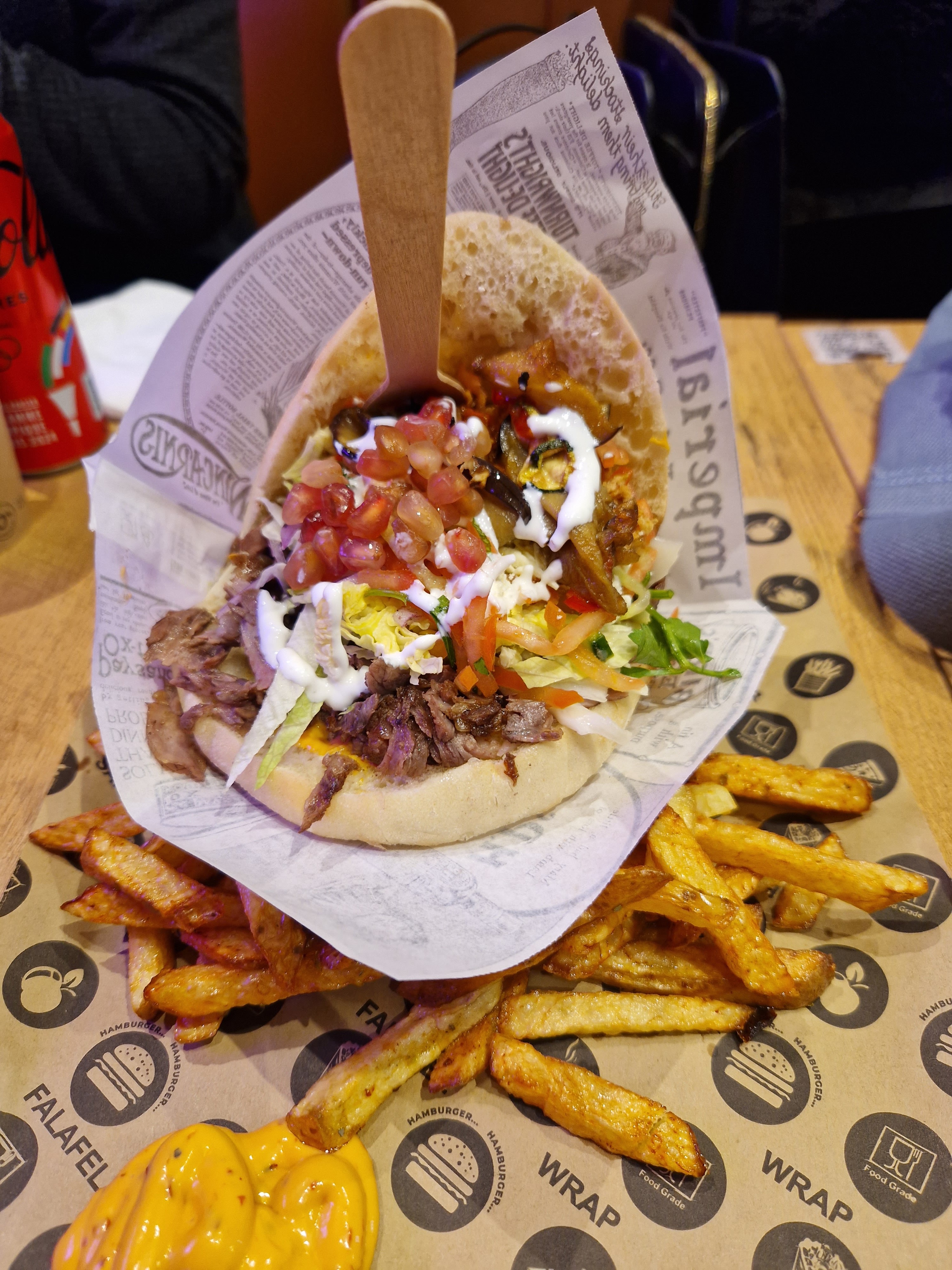 Très déçu. Temps d’attente interminable alors qu’il n’y avais pas foule. Plus de 30min. Alors oui certes c’est bien garnis mais soyons honnête… principalement de salade. Très peu de viande au final et c’est bien dommage car elle est plutôt bonne. Sauce qui ne sert à rien car perdue au fond du pain hélas. Si on prend en compte le prix on ressort au final déçu par ce restaurant. Dommage… mais il y a mieux pour moins chère.