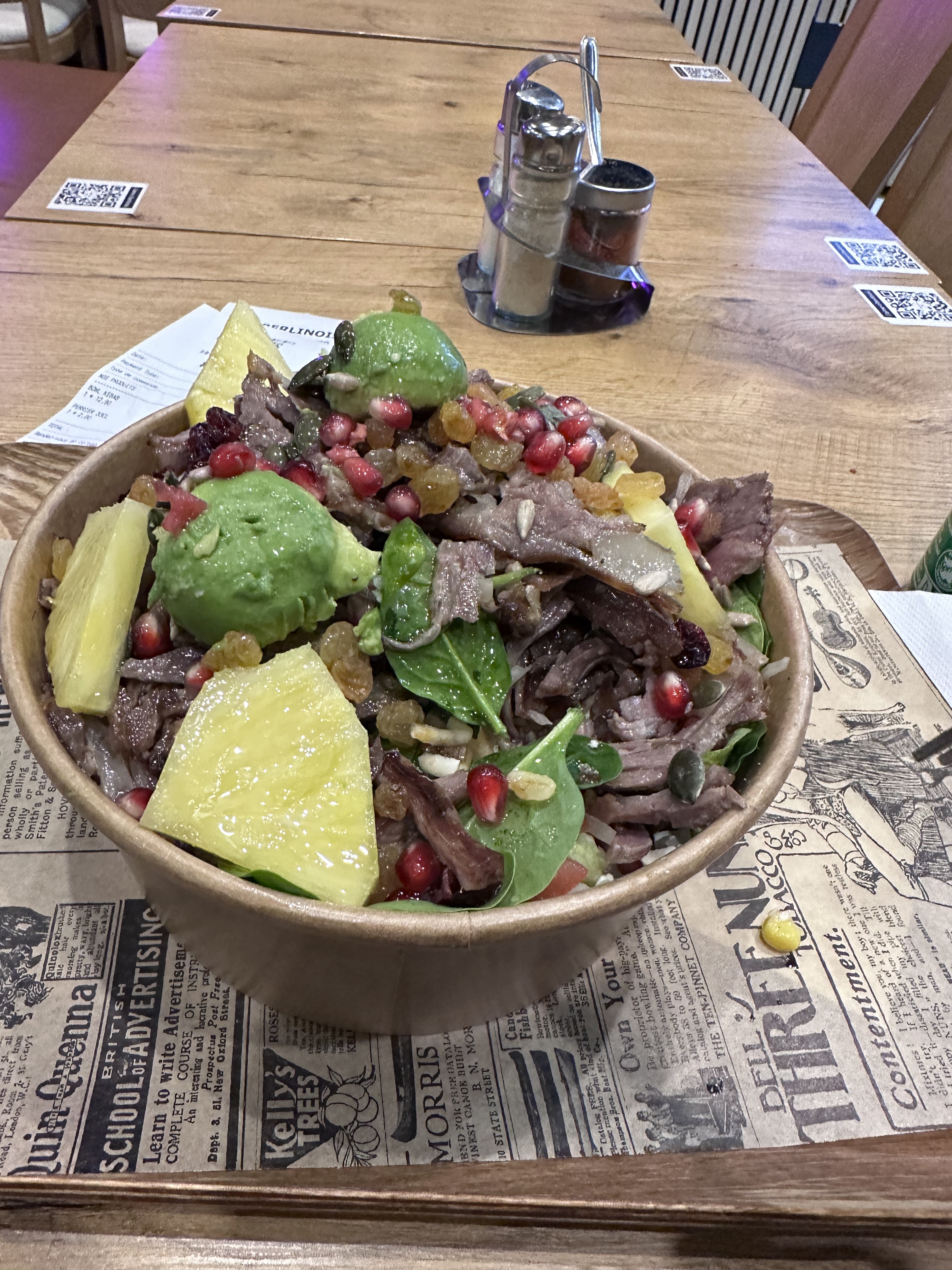 Rien ne va dans ce kebab. Ni le service ni les plats. Tout à changé avant les kebab étaient excellents mais aujourd'hui nous avons pris des o berlinois et un bowl avec de l'agneau. La viande est sèche les quantités ridicules et ils ajoutent des tas d'ingrédients absurdes pour cacher la médiocrité du sandwich baies de goji, raisins secs ananas CA EN DEVIENT RIDICULE. Très décevant