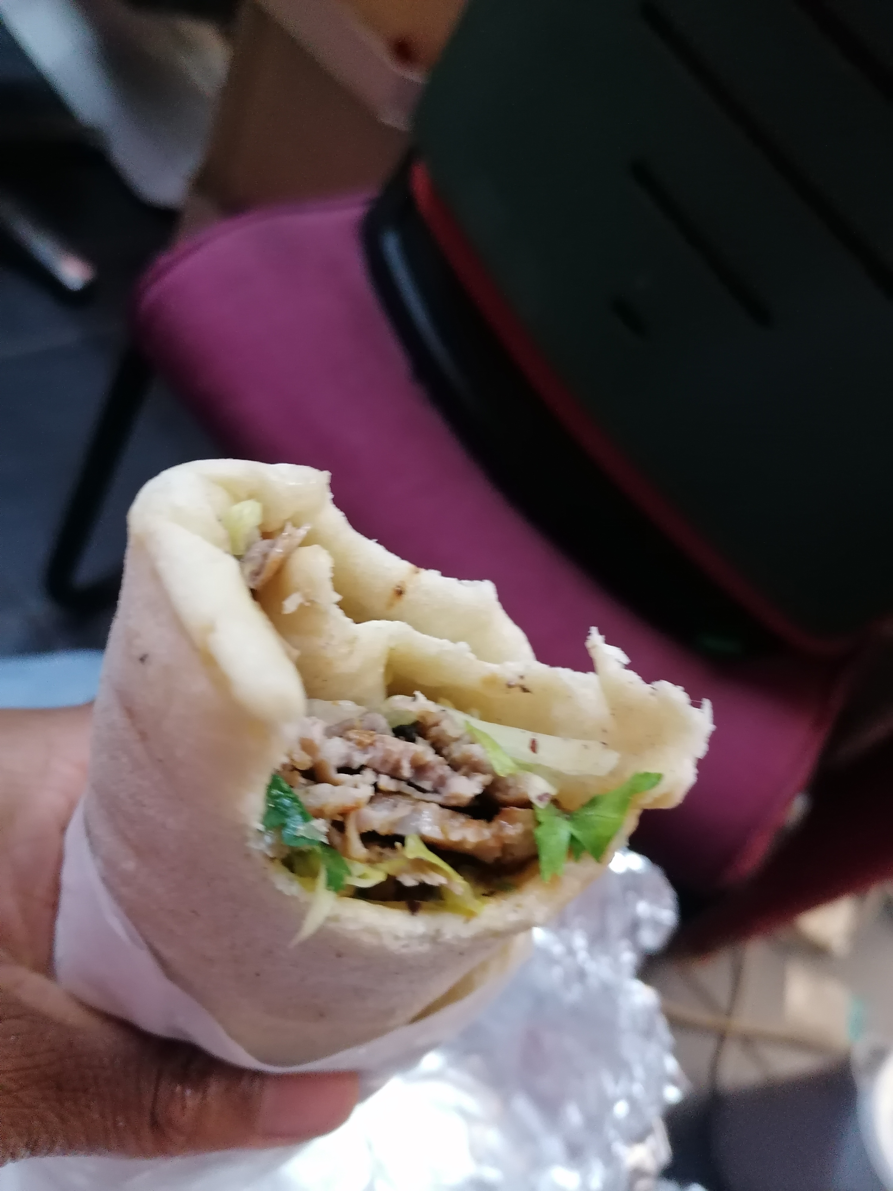 C'est le sandwich kébab , le plus cher que j'ai manger jusqu'à présent a 9 euros par contre , il est vraiment excellent avec la galette et un peu salade. C'est surtout la viande coupe a la main de très bonne qualité a l'intérieur qui fait la différence avec d'autres kébab du même genre. Je dirais le petit défaut se n'y a pas au prix du sandwich kébab élever de frites pour l'accompagne. C'est globalement un sandwich kébab savoureux avec un peu de sauce piquante a l'intérieur.