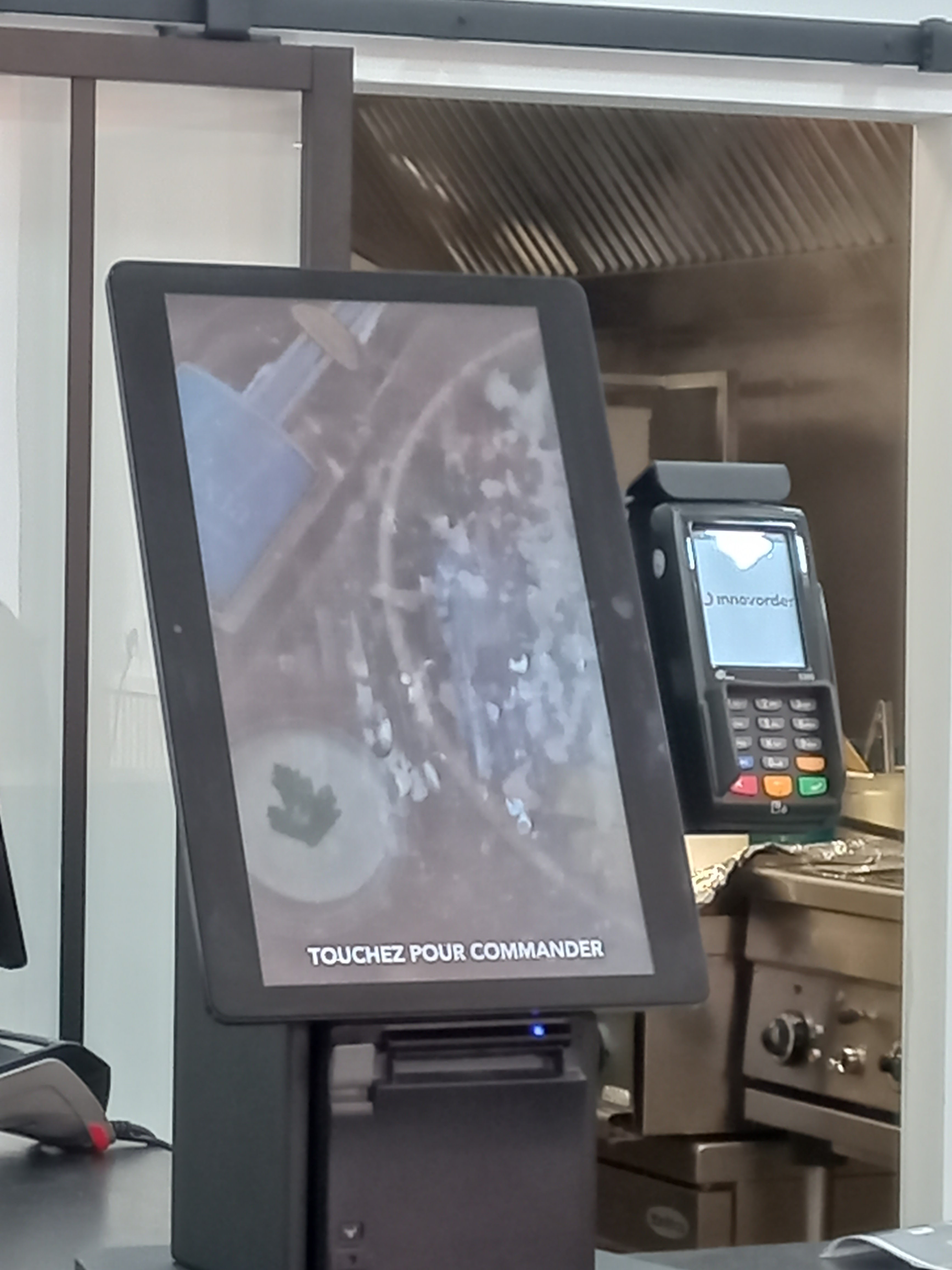 J'ai mangé pour la 1ere fois le côté écran tactile je trouve que ça gâche l'esprit kebab et relation client il faut pas oublier de ce laver les mains après avoir touché l'écran la viande été pas assez chaude je trouve et le pain trop rempli les chaises du mange debout son trop bas alors qu'il aurait la place pour mettre des tables normal. C'est dommage de gâcher cette place. Les frites son très bonne mais le pot pour la sauce est trop petit obligé de demander de la sauce a chaque fois c'est dommage. Je préfère le bon vieux kébab finalement ça manque de charme.