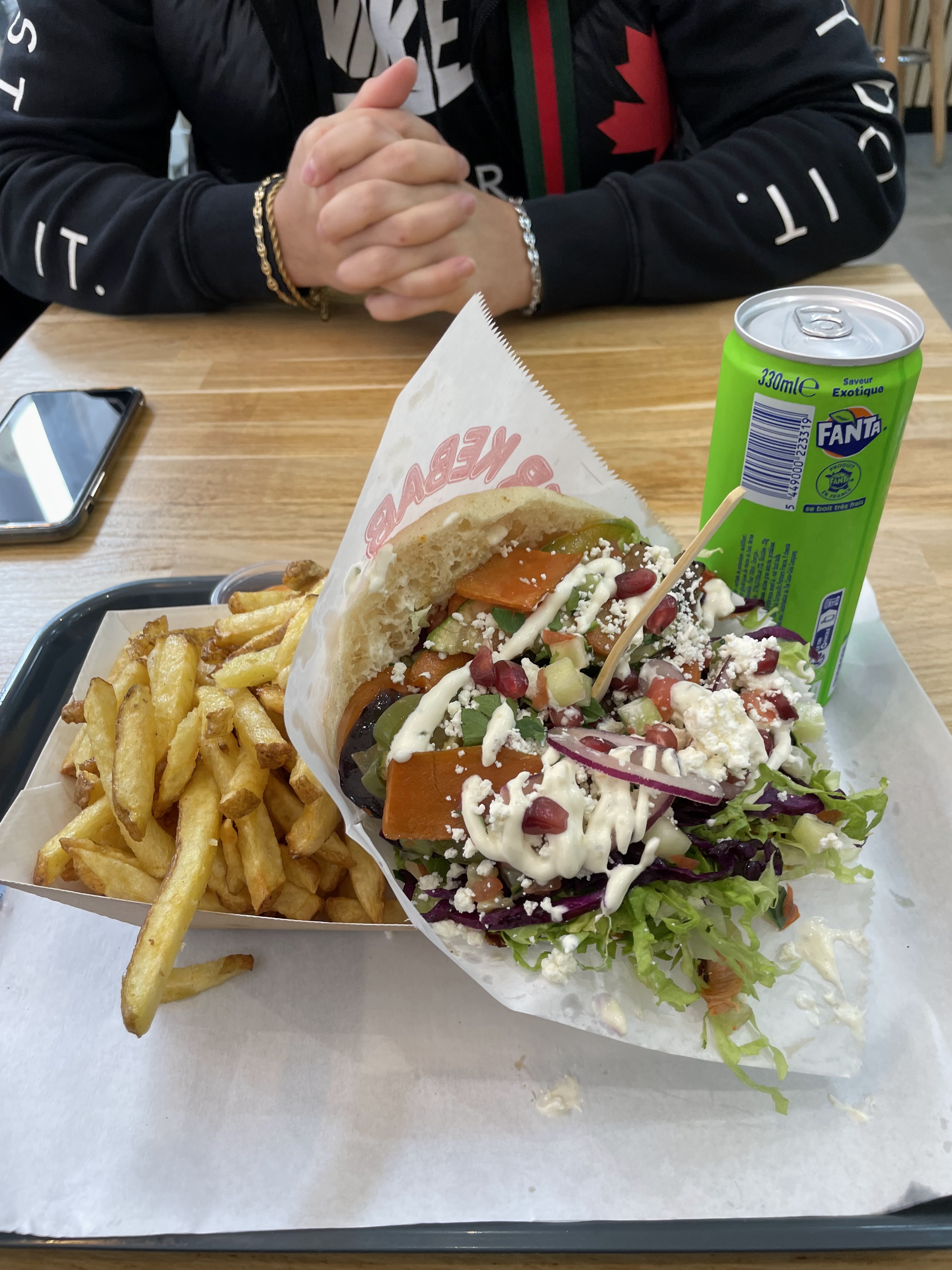 J'ai l'impression de répéter ce que disent tous les clients de ce petit resto, mais j'en sors et c'est tellement au dessus de tous les kebabs que j'ai pu visiter en France que ce serais dommage de ne pas laisser de commentaire: Les frites sont maisons, bien cuites, dorées, excellentes, le sandwich végé que je viens de déguster est juste incroyable, comme à Berlin (et encore dans LES BONS Kebabs à Berlin, et je sais de quoi je parle, j'y ai habité deux ans, et même là bas, ils ne sont pas tous aussi bons) la sauce blanche est incroyable, faites maison évidement, ça change tout, les pépins de grenades, le chou rouge mariné, la salade finement tranchée, les tomates et concombre en dés fins et bien assaisonnés...! Incroyable..! Le chef fait bien plus qu'un kebab, il tord le coup à DEUX vieux mensonges avec un sandwich: 1- Le fast food peut être délicieux, et 2- NON tous les kebabs ne se valent pas.. Et celui ci en est l'étalon or. vous m'avez fait la journée, merci! Bravo! merci! Hâte de revenir, j'en reviens pas! j'ai presque peur d'en faire la promo de peur que ça change si trop de gens se mettent à le connaitre.. À moins que vous ouvriez un plus grand resto!!??? Faites-nous savoir si c'est le cas, que je ramène du monde!!